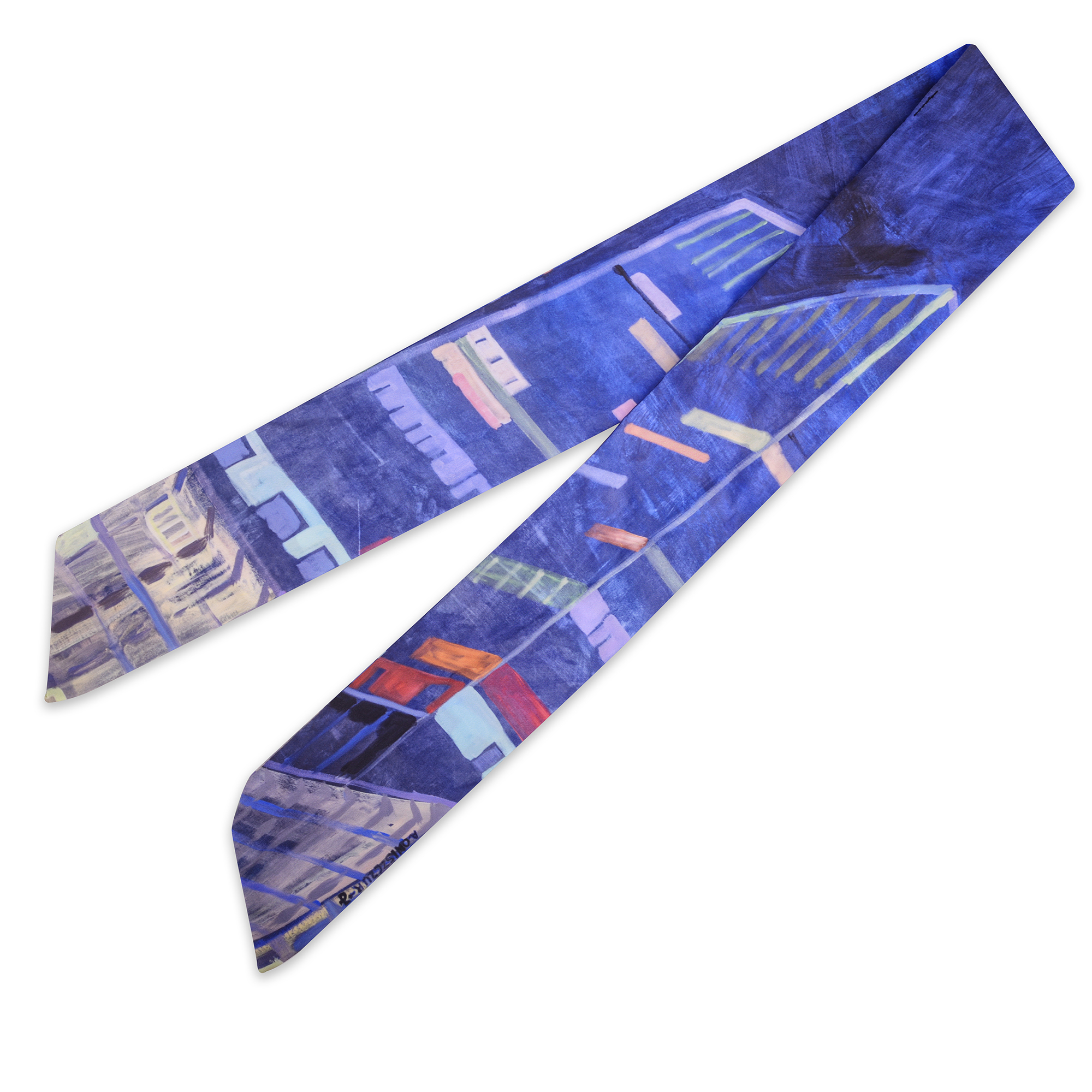 Apaszka w formie wąskiego, lekkiego szalika, wykonana z jedwabiu syntetycznego 110g.