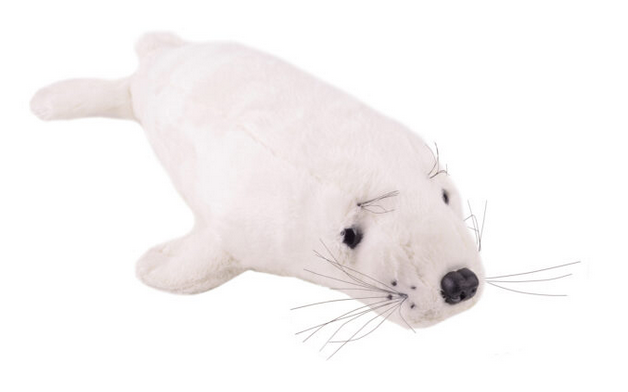 Foczka wykonana jest z bardzo przyjemnego w dotyku, miękkiego materiału LEON (jednostronna, miękka dzianina typu velboa z mikrowłókien) w kolorze białym.