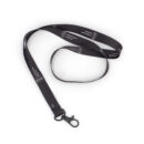 Smycz sublimacyjna z nadrukiem, zakończona czarnym karabińczykiem.